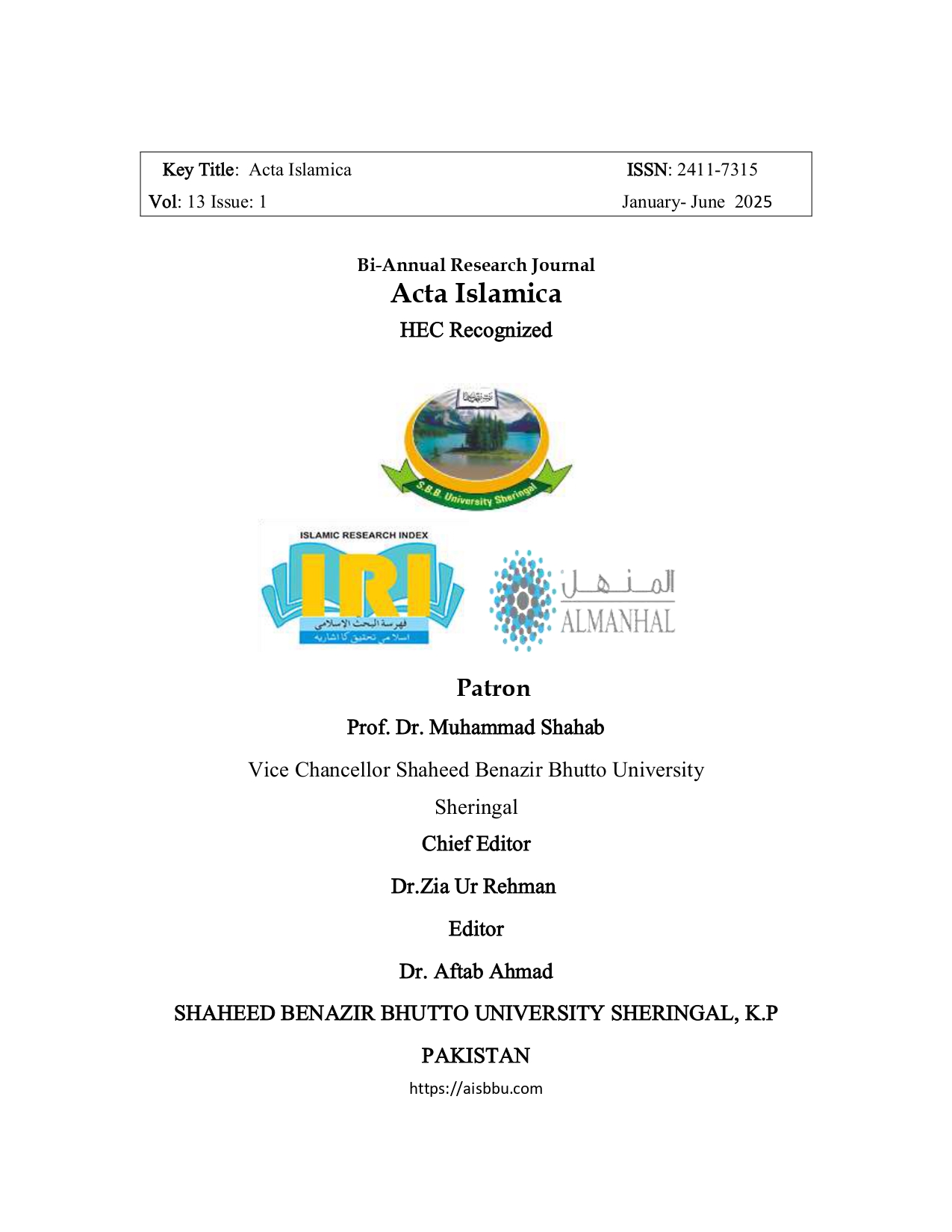 Vol. 13 No. 01 (2025): ACTA ISLAMICA